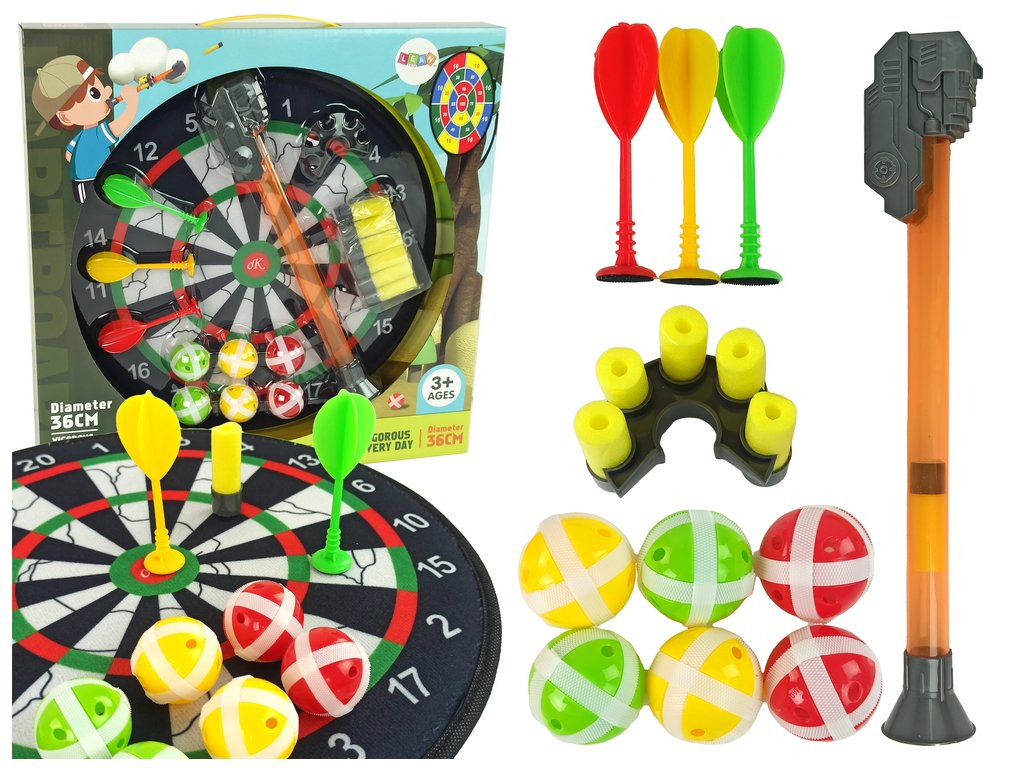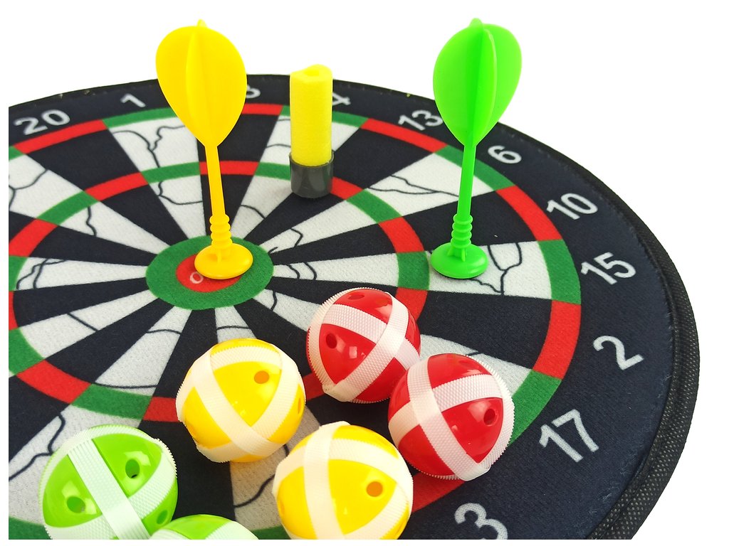 Tento čiernobiely terč na šípky je skvelá zábava pre celú rodinu a priateľov. Terč s mäkkým povrchom zaručuje bezpečnú zábavu. V sade nájdete 6 plastových loptičiek so suchými zipsami, 3 šípky na suchý zips a oranžovú trubičku na vystreľovanie 6 nábojov pusou, čo robí túto hru interaktívnou a vzrušujúcou.