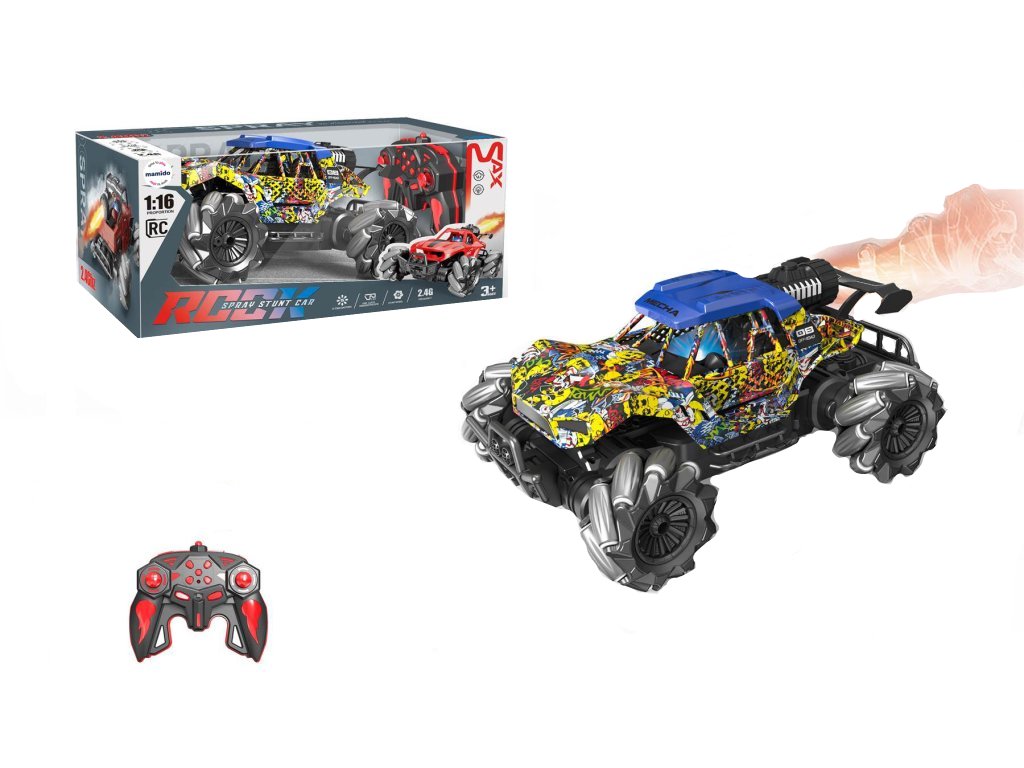 Akčná jazda, svetelné efekty a dymová show v jednom! RC auto v mierke 1:16 dokáže jazdiť dopredu, dozadu, do strán aj diagonálne. Vďaka pohonu 4x4 a špeciálnemu systému kolies zvláda bočné driftovanie aj hladký pohyb po rôznych povrchoch. Automatická demonštračná jazda predvedie triky sama a efektný sprej s LED svetlami dodá jazde pôsobivú atmosféru.