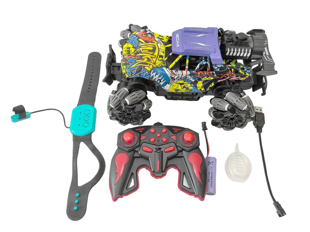 Na ovládanie môžeš použiť klasický 2,4GHz ovládač, alebo vozidlo ovládať pomocou hodiniek, s ktorými auto reaguje na pohyby ruky. Skvelý darček pre deti, ktoré milujú rýchlosť, svetlá a originálne funkcie.