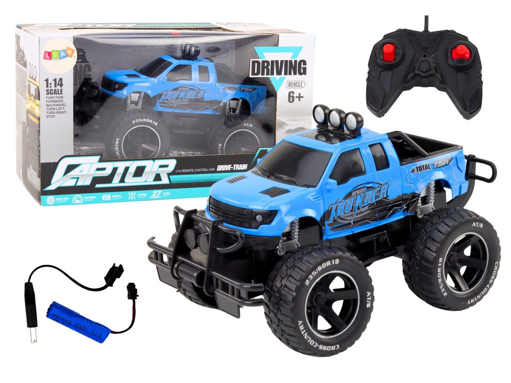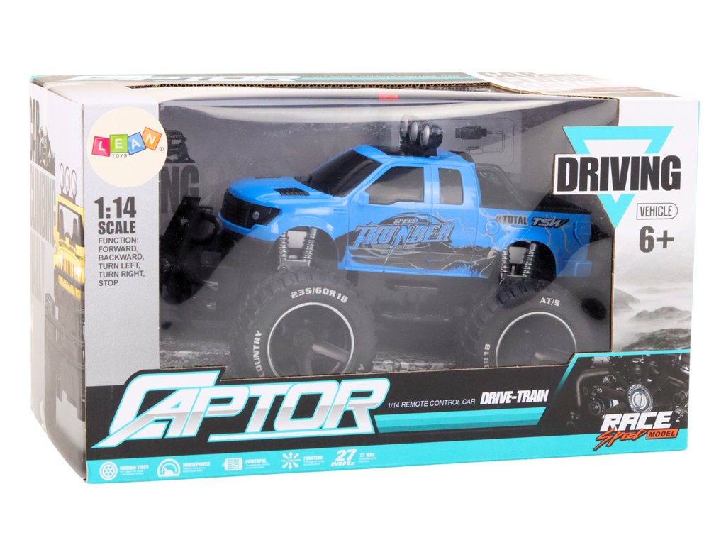 Terénne RC auto 1:14 27MHz na diaľkové ovládanie s gumovými kolesami modré