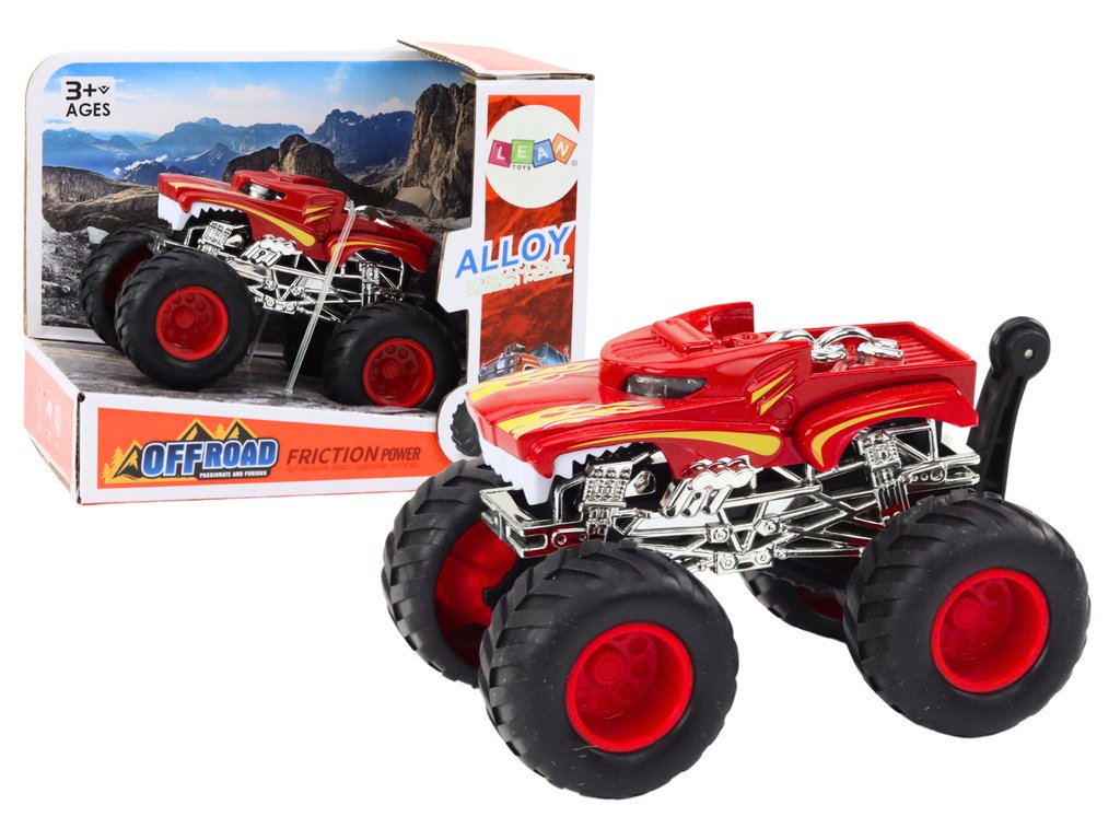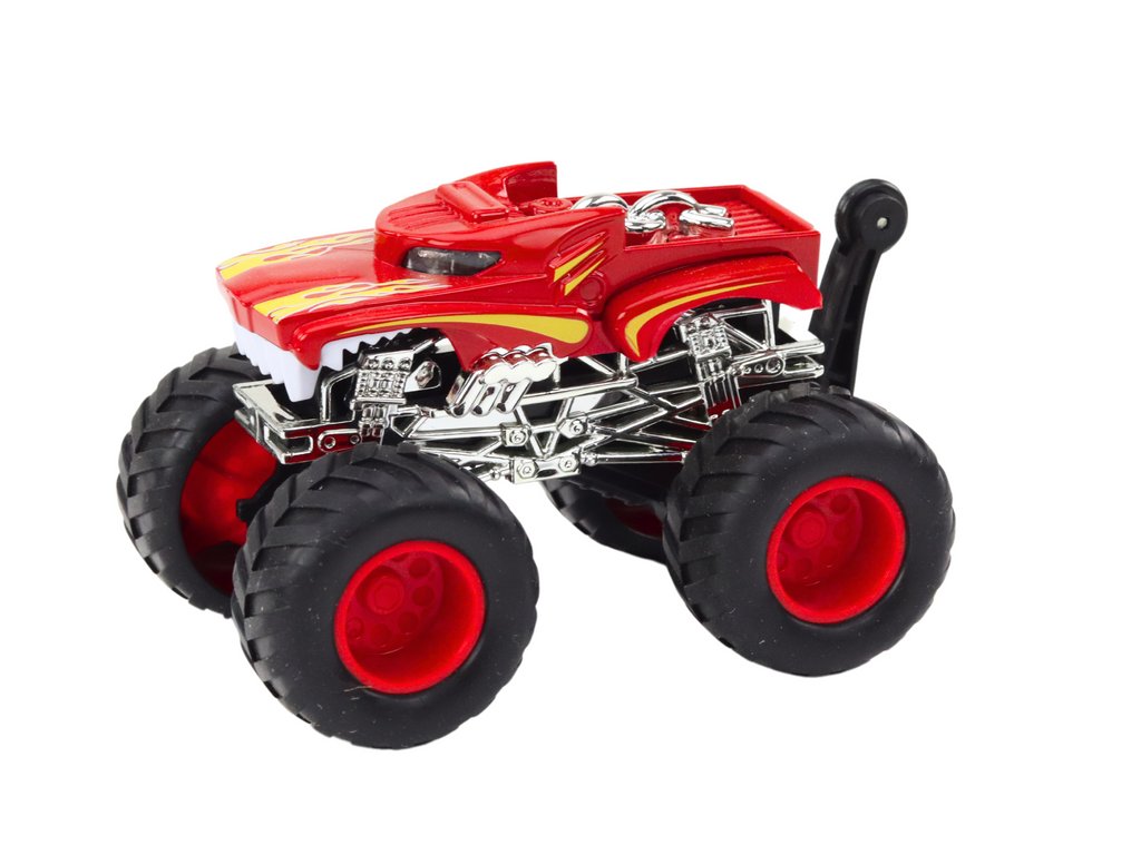 Terénne vozidlo na veľkých gumových kolesách červené