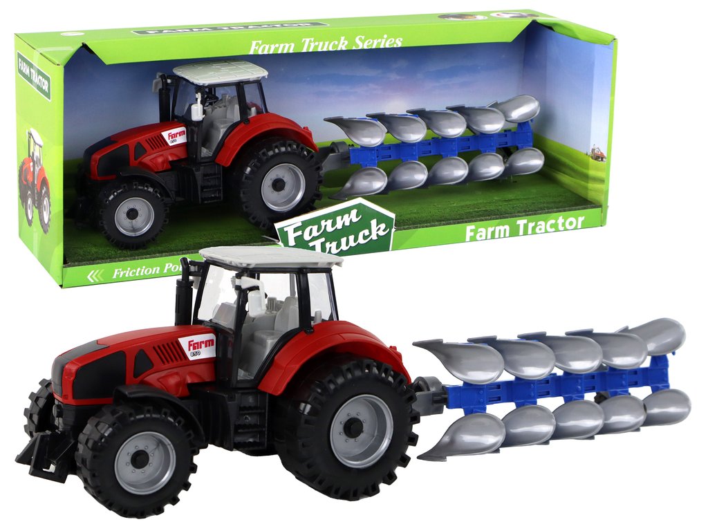 Súčasťou sady je aj modro-sivý pluh, ktorý je možné počas jazdy traktorom otáčať a zdvíhať. Keď chcete použiť pluh, stačí zdvihnúť koleso a pluh sa zníži, čo umožňuje efektívne obrábanie poľa pri hre. Pluh má tiež pohyblivé časti, čo obohacuje zážitok a podnecuje predstavivosť malých poľnohospodárov.