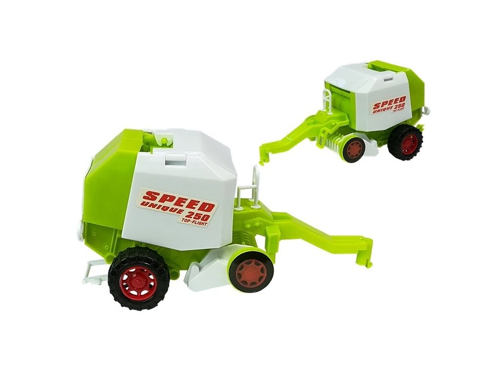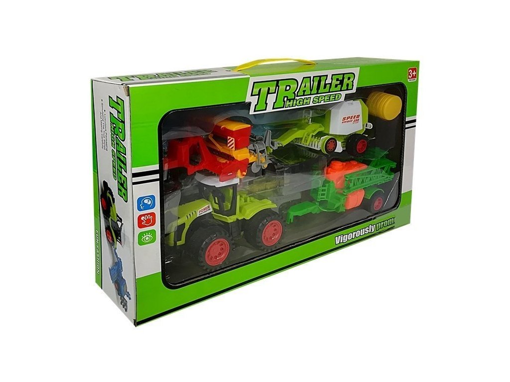 Sada farmárskych strojov je ideálna pre malých nadšencov poľnohospodárstva Obsahuje realisticky spracovaný traktor a pripojiteľné prívesy, ktoré umožňujú rôzne druhy hier, ako je postrek plodín alebo rozmetanie hnojív.