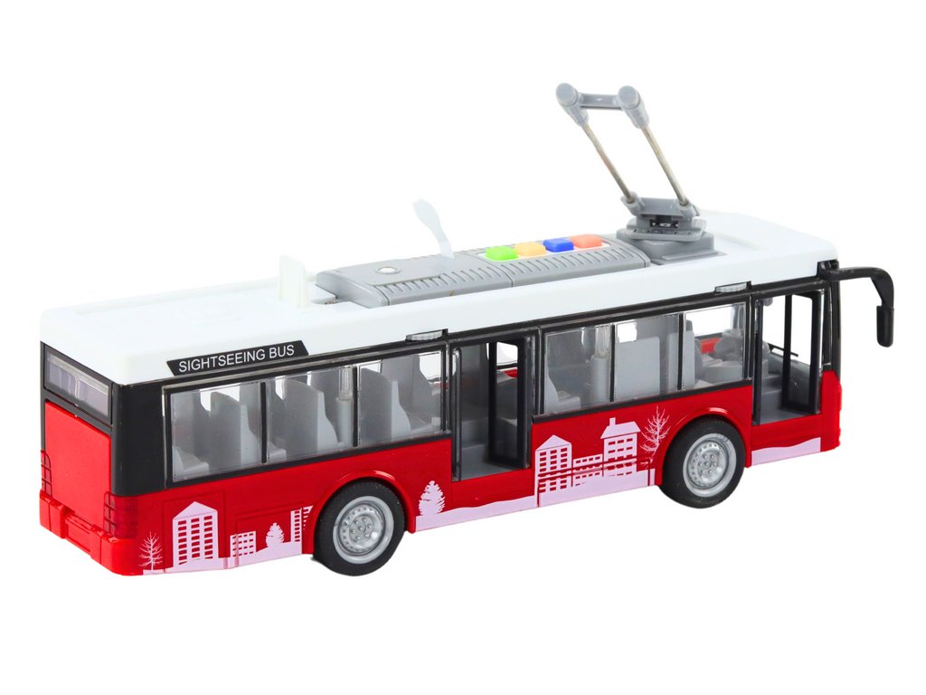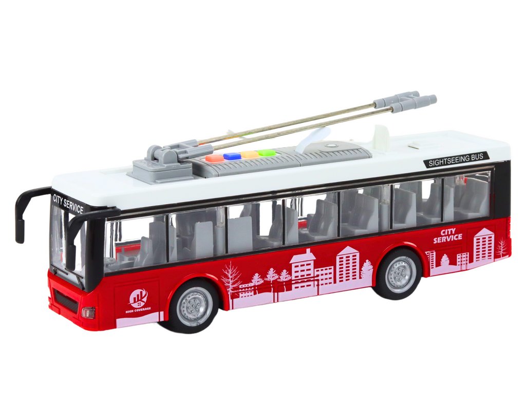 Trolejbus s frikčným pohonom svetlami a zvukmi 1:16 červený