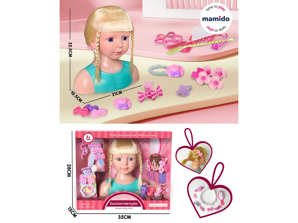 Hlavička na česání s doplnkami je skvelou hračkou pre všetky malé milovníčky účesov a módy. Vďaka realisticky vyhotovenej hlavičke s dlhými blond vlasmi môžu deti trénovať česanie, zapletanie vrkočov aj tvorbu originálnych účesov. Súčasťou balenia je bohatá súprava doplnkov, ktorá zahŕňa hrebienok, farebné gumičky, sponky a ozdobné štipce, takže kreatívne hranie nemá žiadne medze.