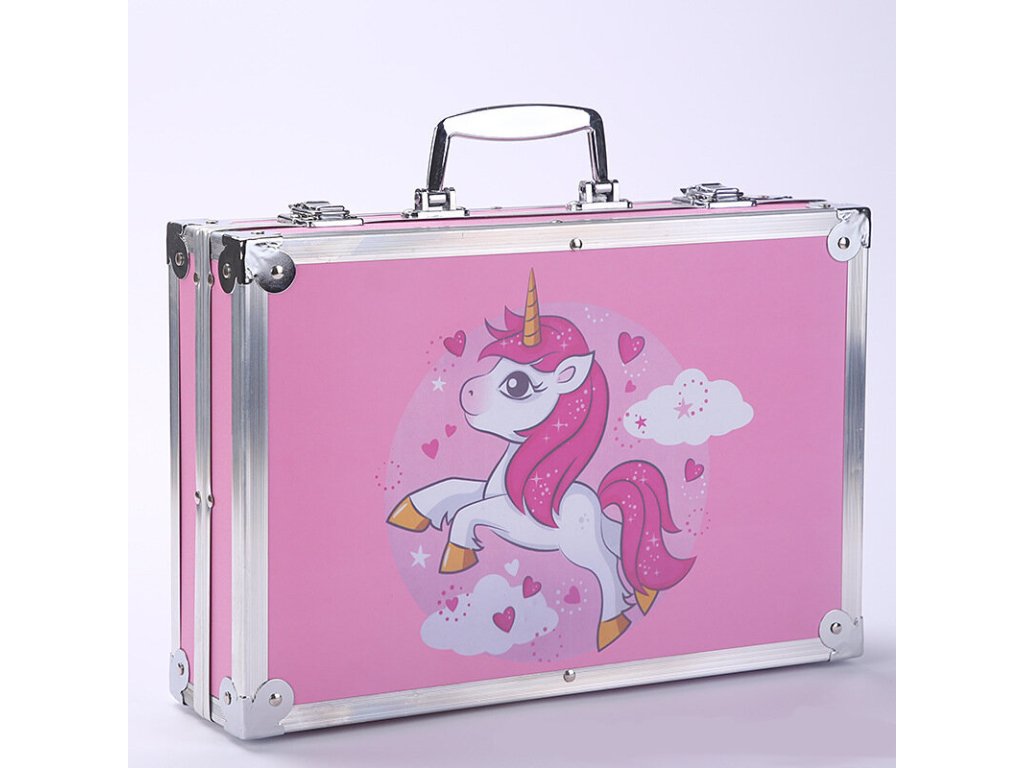 Umelecká sada v kufríku 145 dielov jednorožec ružová