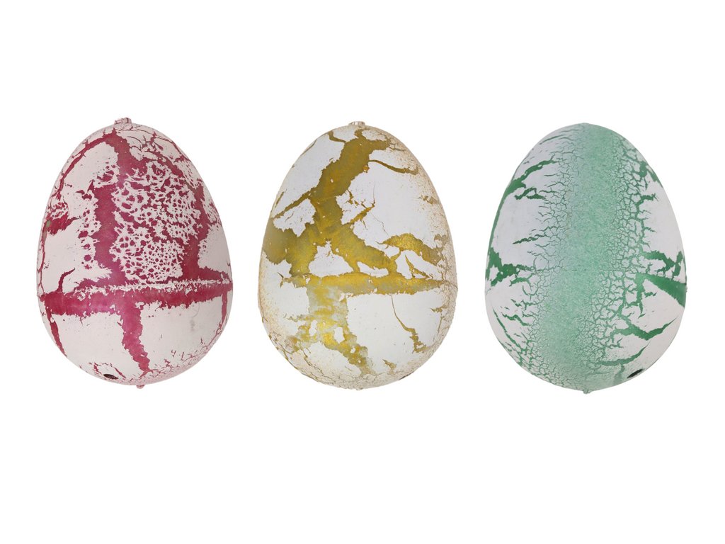 Dinosaurie vajcia sú fascinujúce sada, ktorá priťahuje pozornosť detí a prebúdza ich zvedavosť o prírode. Každé vajce je vyrobené zo škrupiny, ktorá má špeciálne navrhnuté otvory umožňujúce prístup vody dovnútra. Vnútri každého vajca sa nachádza malý dinosaurus, ktorý pri ponorení do vody začne absorbovať vodu a postupne zväčšovať svoje rozmery.