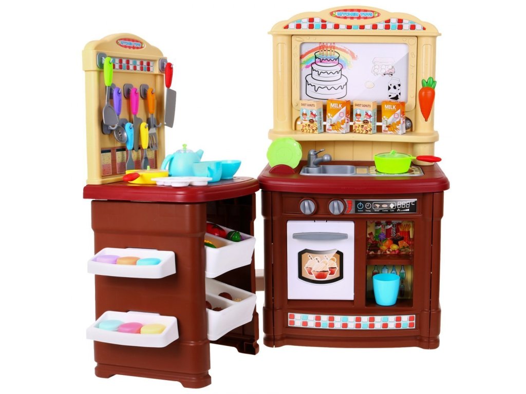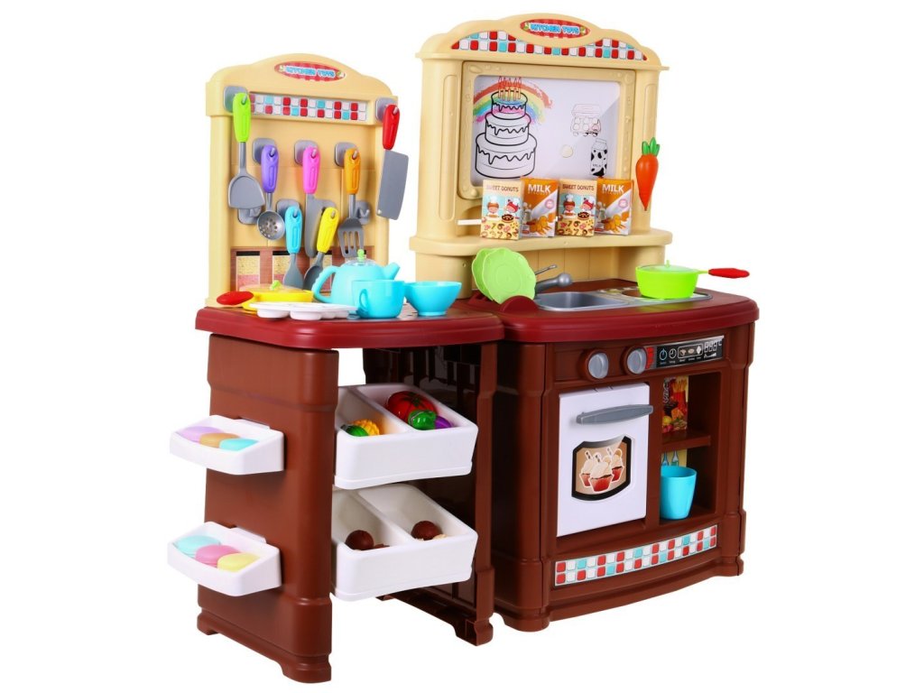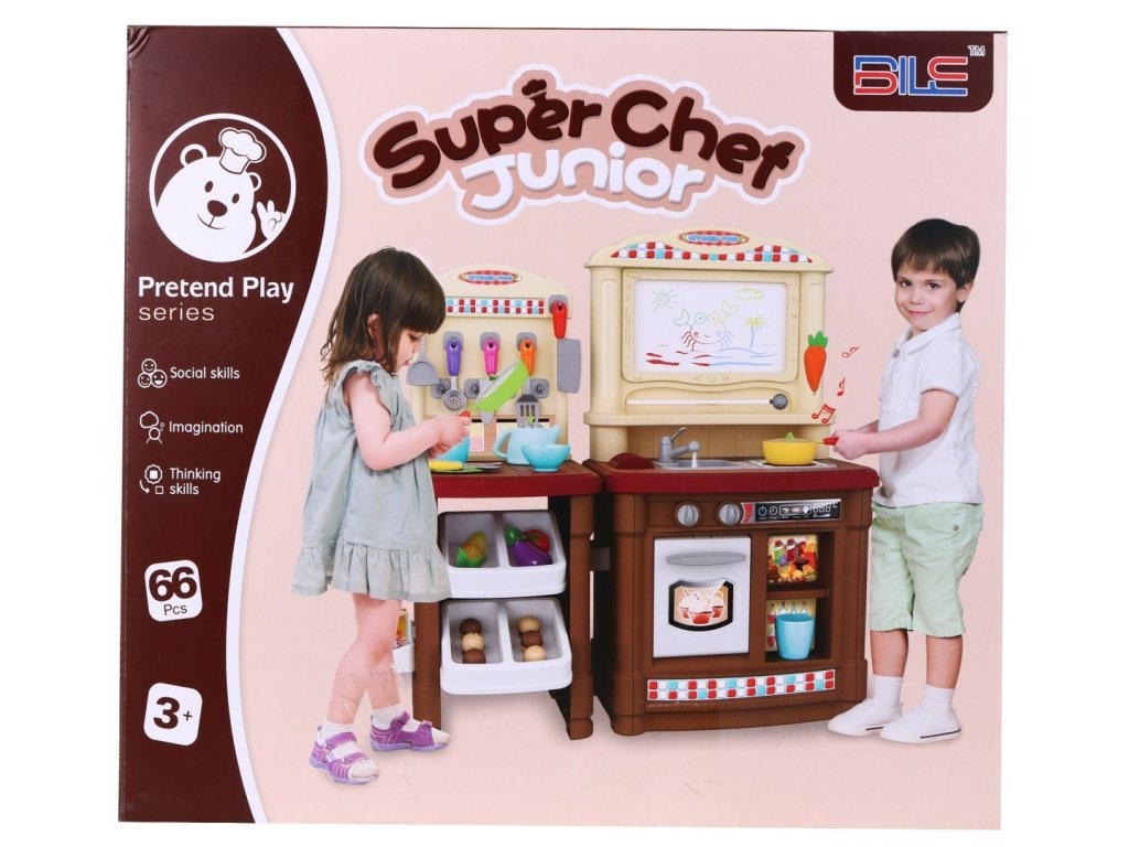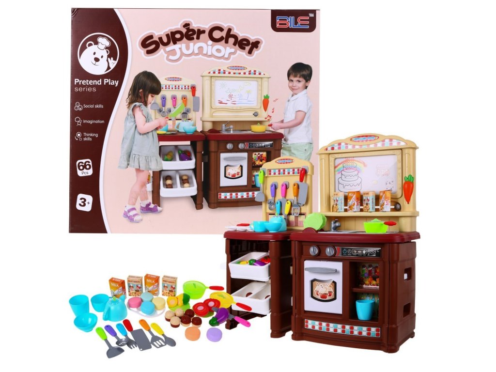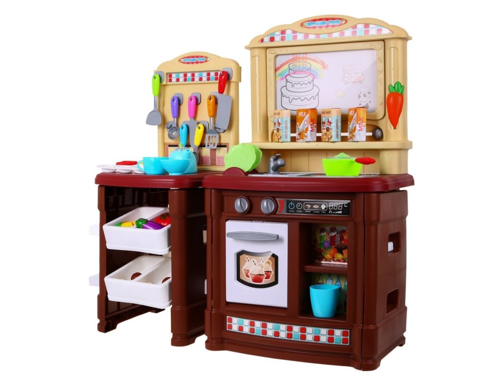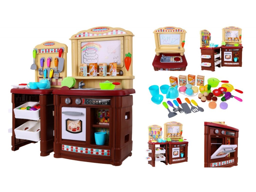 Predstavujeme Vám dobre vybavenú detskú kuchyňu pre malé kuchára a kuchárky. Kuchyňa má umývadlo so skutočnou vodou a senzorickú indukčné svietidlom, ktorá produkuje zvuky, melódie a zvuky varenia. Zvuky varenia a zvuky melódií sú sprevádzané červeným svetlom. Na vrchu je mazací tabule, kde si môžete poznamenávať recepty, nákupný zoznam a ďalšie. Kuchynka bola veľmi starostlivo vyrobená z kvalitného plastu. Vhodná veková kategória od 3+ rokov. Výrobok má európsky certifikát bezpečnosti CE.