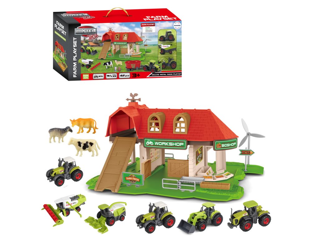 Veľká kovová farma so zvieratkami a traktormi MT1437