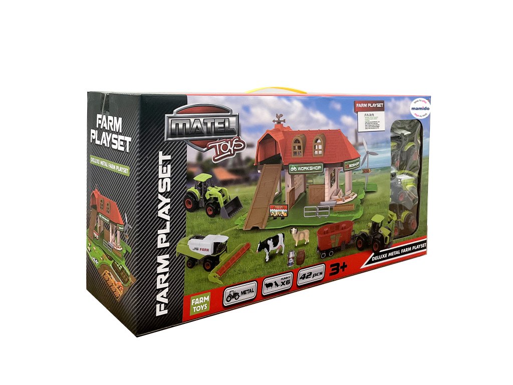 Rozsiahla farmárska herná súprava prináša deťom skvelú kombináciu kovových vozidiel, farmárskych budov a zvieracích figúrok. Dominantou je veľká farma s parkovacím priestorom a ďalšími prvkami, ktoré deťom umožnia vytvárať vlastné vidiecke príbehy. Kovové traktory a doplnky pridávajú hračke na odolnosti, zatiaľ čo figúrky hospodárskych zvierat zaisťujú realistický herný zážitok.