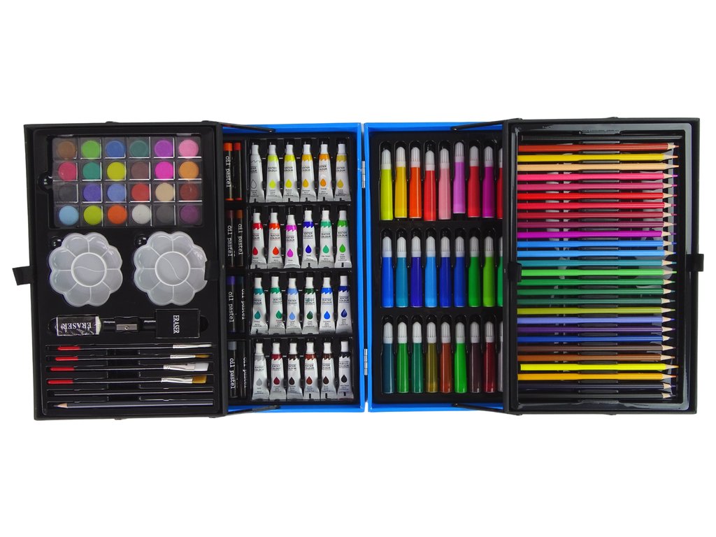 Prebuďte predstavivosť a kreatívne schopnosti svojho dieťaťa s umeleckou sadou. V našej umeleckej sade sa nájde niečo pre každého – fixky na vyfarbovanie, pastelky na kreslenie a farby na maľovanie. Všetko v sýtych farbách, ktoré skvele vyniknú na papieri. Celá sada je uzavretá v praktickom kufríku, ktorý je možné ľahko zložiť, uzavrieť a vziať so sebou - do školy, do škôlky, na výtvarné kurzy alebo na výlet, aby bolo možné maľovať vonku! Umelecká sada nie je určená len pre deti.