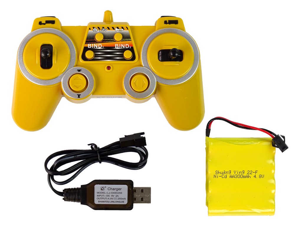 - Nákladné auto je napájané batériou 4,8 V (súčasťou sady), zatiaľ čo diaľkové ovládanie vyžaduje dve batérie AA 1.5 (nie sú súčasťou balenia).
