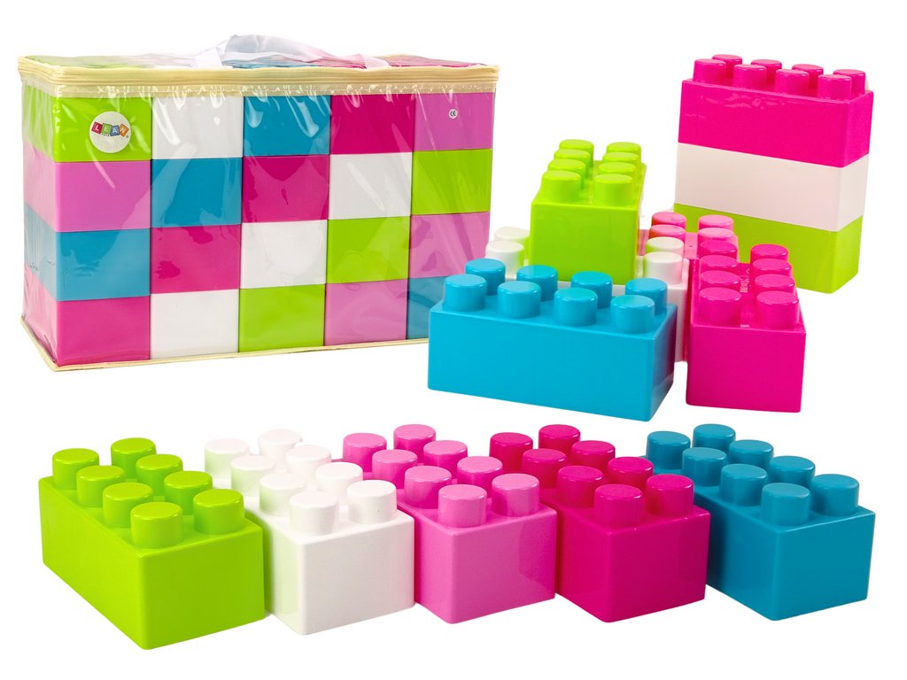 Sada obsahuje aj samolepky s písmenkami a číslicami, ktoré umožňujú ďalšiu personalizáciu stavieb a hravou formou učia základným znalostiam. Praktická taška potom uľahčuje prenášanie aj ukladanie kociek, čo zaisťuje zábavu kedykoľvek a kdekoľvek.