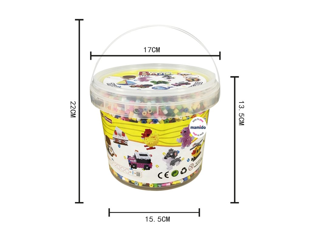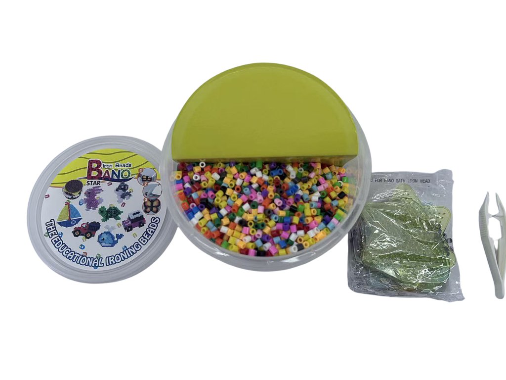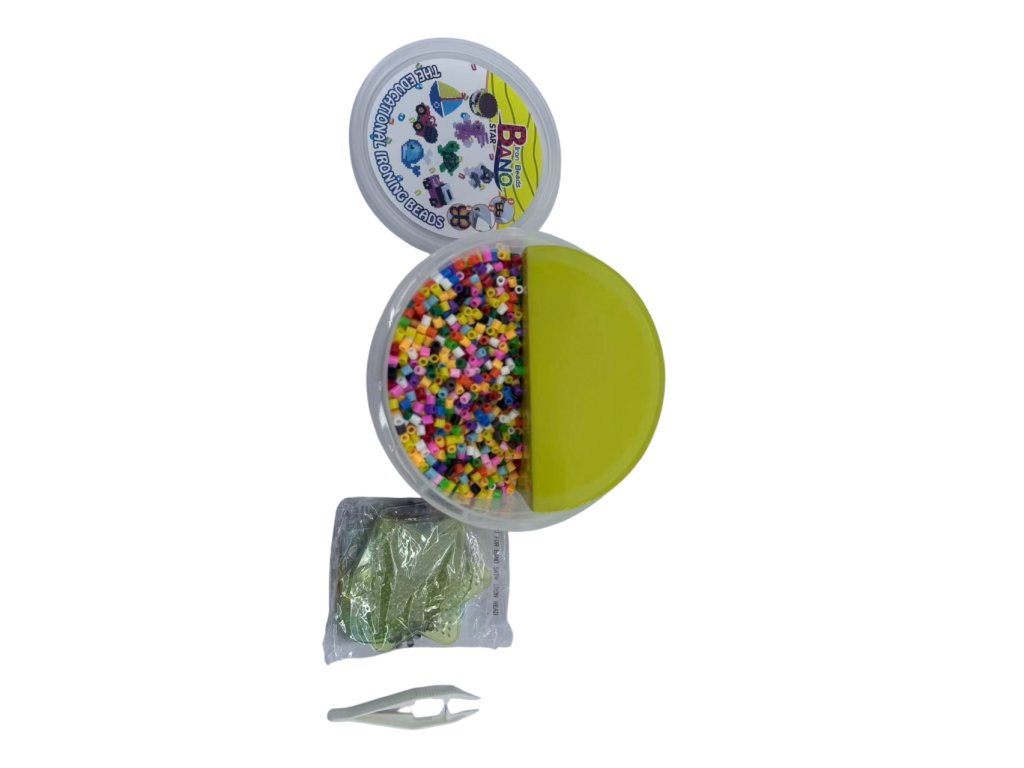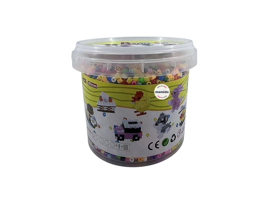 Farebná výtvarná súprava pre tvorivé deti. Plastové zažehlovacie korálky umožnia vytvárať jednoduché aj detailné obrázky pomocou šablón, následne sa motív priloží papierom a zažehlí žehličkou – vznikne pevný obrázok ako dekorácia alebo prívesok. V balení je prehľadný uzatvárateľný kýblik na jednoduché skladovanie a prenášanie.