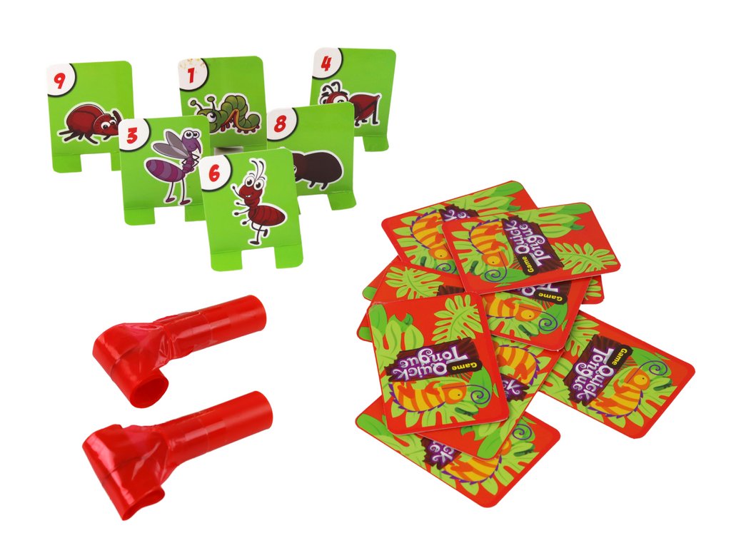 Hráči v maskách si sadnú oproti sebe. Na stole sa rozloží rad zelených červíčkov. Každý z nich má priradené číslo na jednoduchšie hranie. Osoba rozdávajúca zamieša červené karty, potom vyloží jednu na stôl. Úlohou hráčov je čo najrýchlejšie zhodiť vyžrebovaného červíčka. Hráč, ktorý ako prvý vidí kartu s vyžrebovaným hmyzom a zhodí ju vysúvajúcim jazýčkom, získava červenú kartu. Nakoniec vyhráva osoba s väčším počtom kariet.