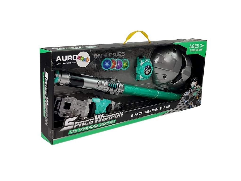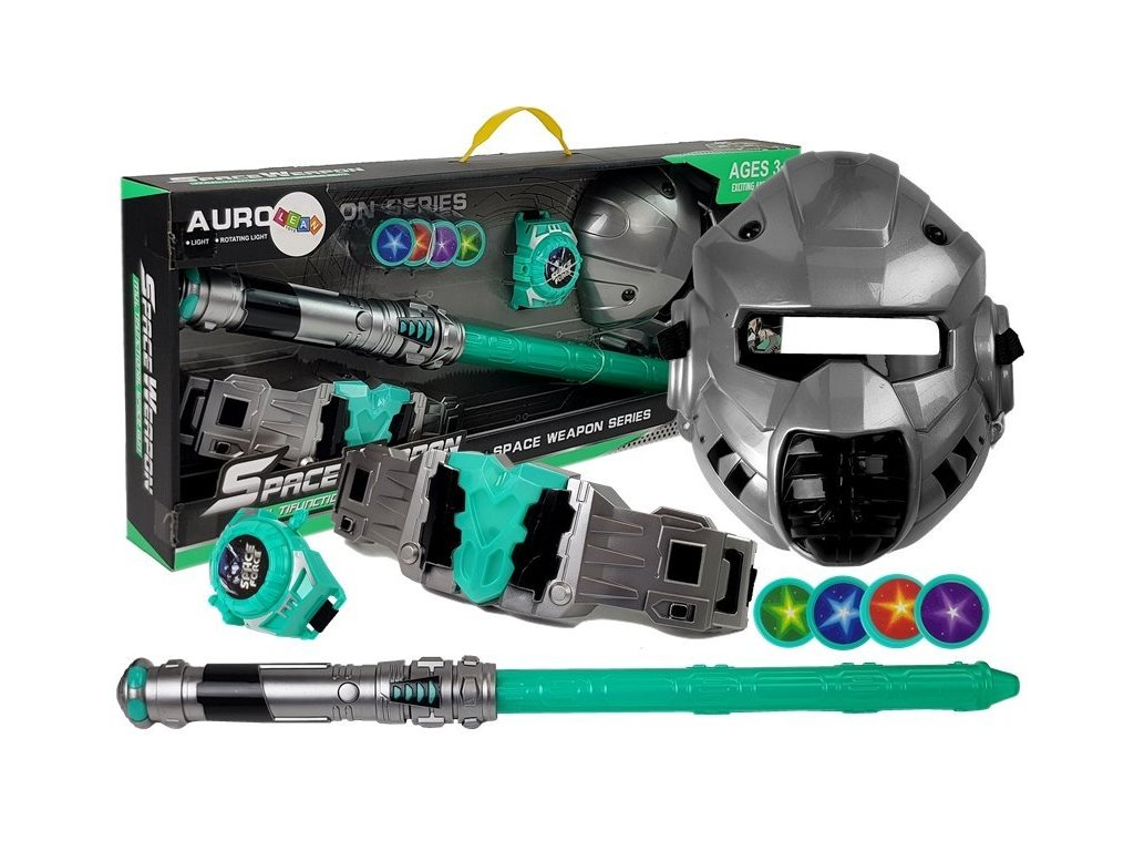 Sada svetelných zbraní pre všetkých nadšencov vesmírnych vojen. Svetelný meč vytvára zvukové efekty a tiež svieti na modro. Pás v súprave má vzadu gumičku, vďaka ktorej po navlečení nespadne a ľahko sa prispôsobí dieťaťu. Po stlačení tlačidla v hornej časti pásu budete počuť zvuky, ktoré tiež sprevádzajú svetelné efekty.