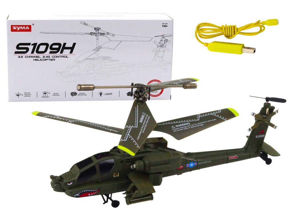 Vojenský vrtuľník Apache na diaľkové ovládanie R/C Syma S109H khaki