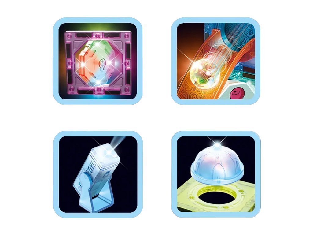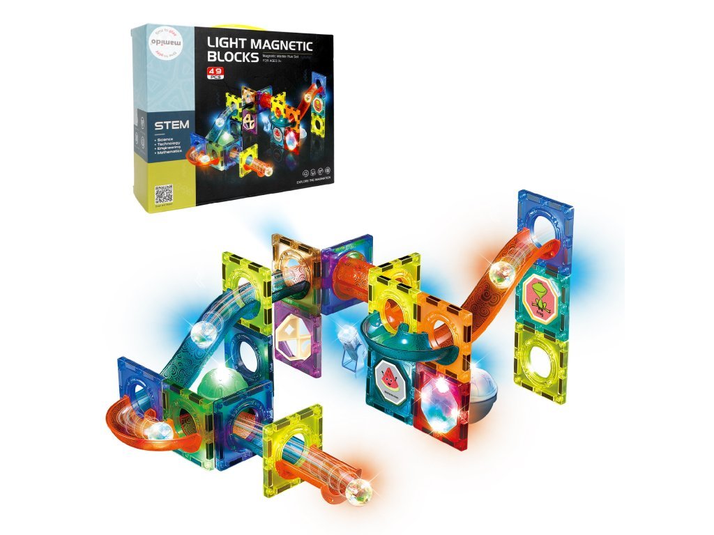 Magnetické kocky sú vynikajúcou vzdelávacou hračkou, rozvíja detskú kreativitu, učia trpezlivosti a sústredeniu. V brožúre, ktorá je súčasťou sady, sú uvedené ukážky dráhy. Niektoré komponenty majú zabudované osvetlenie, aby hračka vyzerala nápadito.