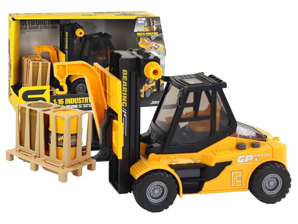 Tento vysokozdvižný vozík v mierke 1:16 prináša Vášmu dieťaťu nezabudnuteľné zážitky spojené s obsluhou skutočného stroja. Impozantný žltý dizajn vozidla nie je iba realistický, ale je plný funkcií, ktoré nadchnú každého malého operátora.