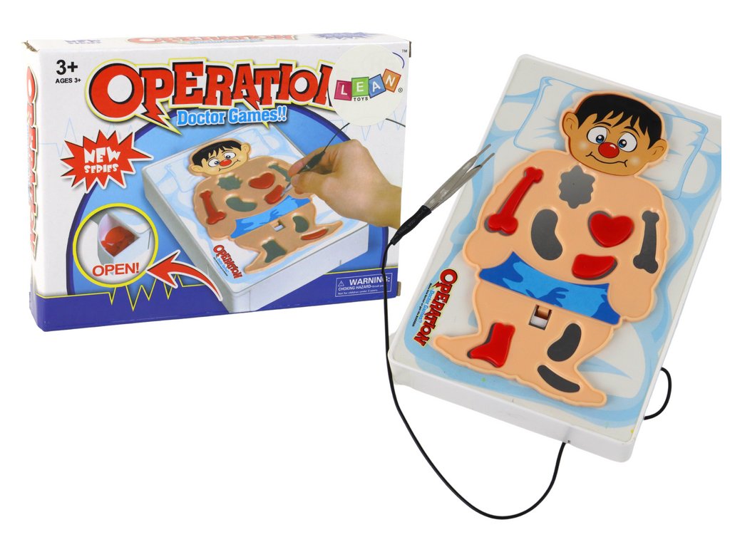 Vyberte postihnutý orgán a pokúste sa ho odstrániť pomocou pinzety tak, aby nezaznel signál. Snažte sa jemne odobrať čo najviac orgánov. Ten, kto ich odoberie najviac bez zaznenia signálu, vyhráva! Preukážte svoju presnosť a obratnosť ako skutočný chirurg!