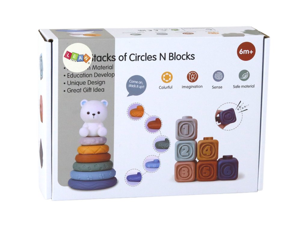 Sada obsahuje aj 6 kociek, z ktorých každá má vzdelávaciu funkciu. Ponúkajú výukové prvky, ako sú čísla, písmená, obrázky ovocia, zvierat a tvarov , a stávajú sa tak pre batoľa nielen nástrojom k hre, ale aj pokladnicou vedomostí. Dieťa sa s nimi môže hrať a zároveň sa učiť základné pojmy, rozvíjať kognitívne zručnosti a podnecovať kreativitu.