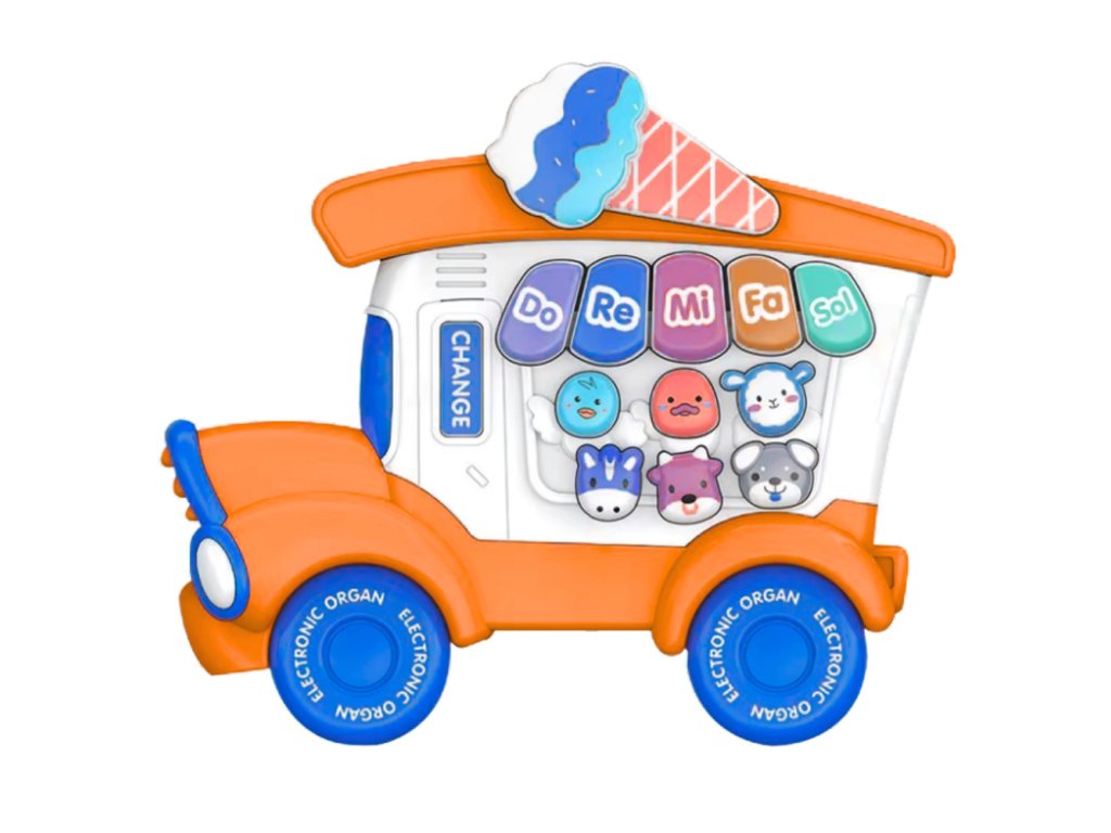 Vzdelávacie elektrické piano pre batoľatá Zmrzlinové auto oranžové