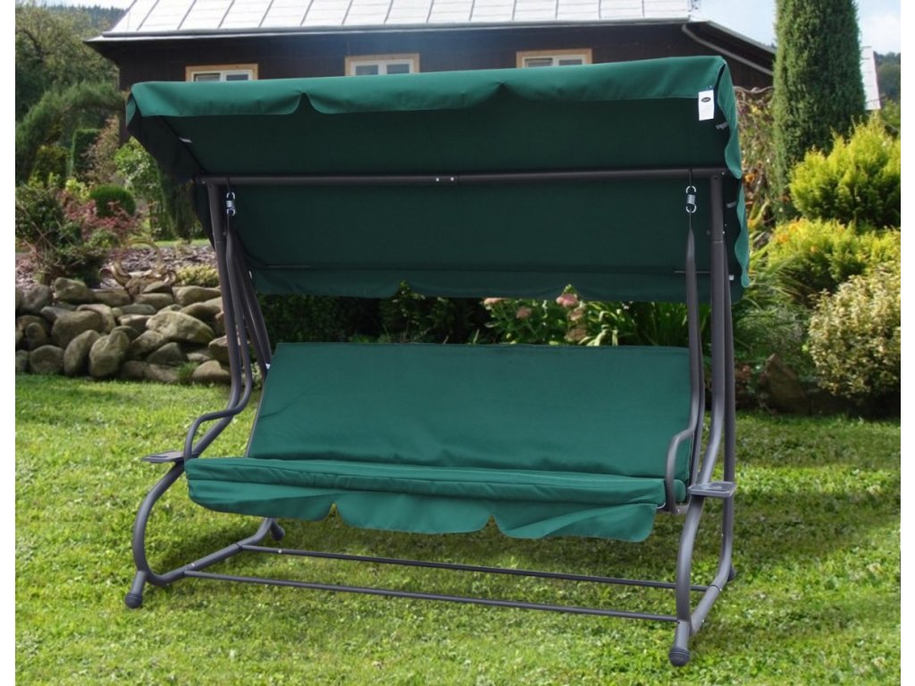 Záhradná hojdačka so sklopným sedákom a regulovateľnou strieškou.