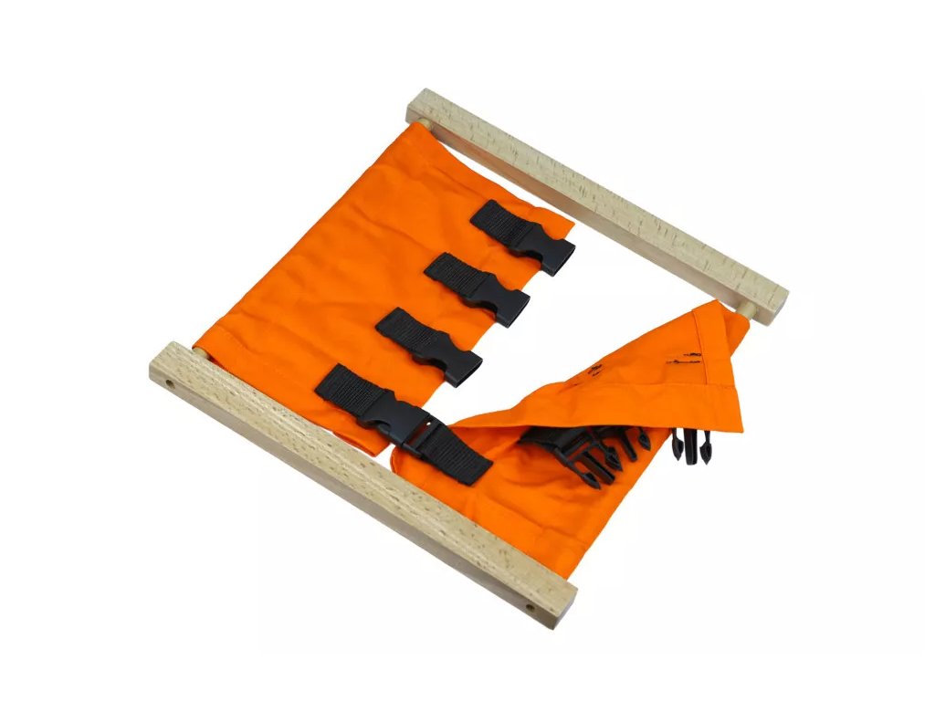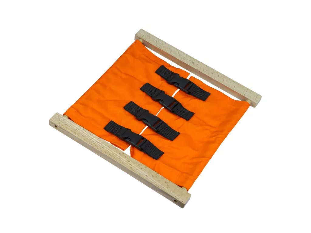Zapínací rám patrí medzi Montessori pomôcky praktického života a slúži na nácvik zapínania a rozopínania batohovej pracky. Aktivita podporuje samostatnosť dieťaťa pri obliekaní a prenositeľnú zručnosť pre každodenný život.