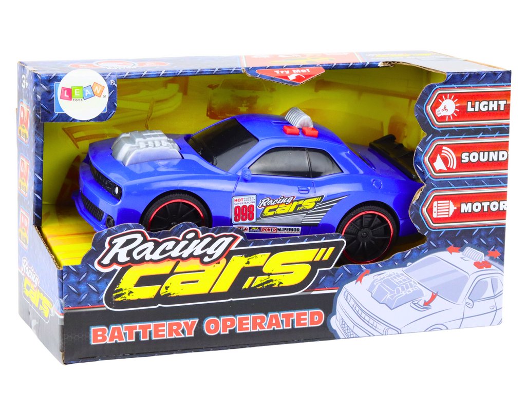 Závodné auto s otváracím motorom, svetlami a zvukmi modrej