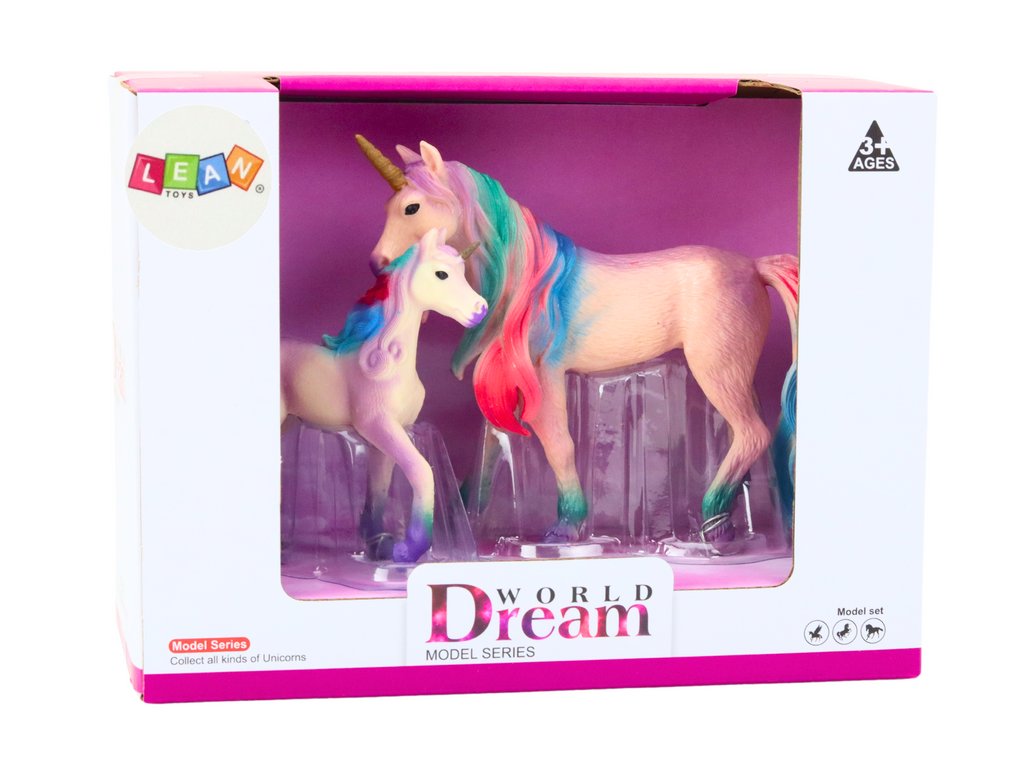 Figúrky jednorožcov, predstavujúce dospelého jednorožca s mláďaťom, sú výnimočnou sadou, ktorá iste očarí každého milovníka týchto rozprávkových bytostí. Obaja jednorožci sú fialovej farby, čo im dodáva magický vzhľad. Realisticky stvárnené textúry robia figúrky takmer živými, čo ďalej zdôrazňuje ich jedinečnosť a starostlivé spracovanie.