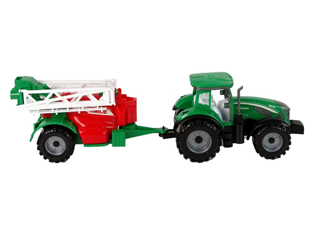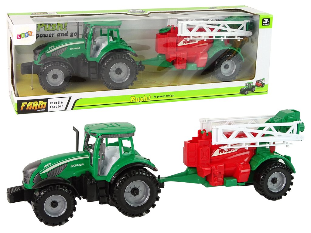 Tento traktor oživí akúkoľvek hru a umožní deťom objavovať fascinujúci svet poľnohospodárstva. V balení nájdete zelený traktor s červeno-zeleným postrekovačom, ktorý môžete pripojiť na zadnú časť vozidla. Traktor má trecí pohon, čo mu zaistí pohyb vpred aj dozadu. Postrekovač má dlhé, biele ramená, ktoré sú pohyblivé, takže dieťa má z hry ešte väčšiu radosť.