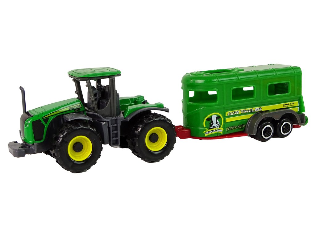 Traktor s prívesom v zelenej farbe je pútavá hračka, ktorá deťom zaistí hodiny radosti a kreatívnej zábavy. Vyzerá veľmi realisticky a má plastové, pohyblivé kolesá, ktoré uľahčujú pohyb po podlahe.